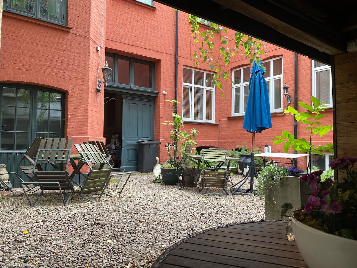 Private Townhouse over 3 levels in the very best location in Copenhagen. 2 bathrooms and separate spaces make it perfect for larger groups and families. Some of the most iconic sites such as Nyhavn, the Marble Church, Rosenborg Castle, Amalienborg are all minutes away. Beautifully designed and located in a peaceful back courtyard, so while you are in the center of the city, it is still very quiet for relaxing after a day seeing the sites.