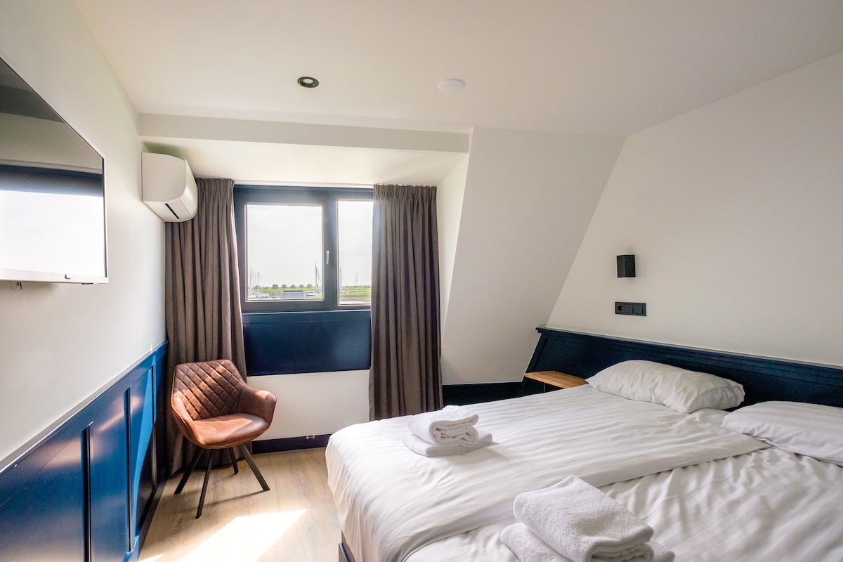 Residence Oude Haven in Colijnsplaat is a premium recreation complex right on the Oosterschelde, a truly beautiful location. This luxurious and spacious 2-person room with private Finnish sauna is equipped with all comforts! We provide freshly made beds! There is only a side window in the room. Residence Oude Haven is without reception and breakfast. There is a full set of dishes and a kettle, nespresso machine and a fridge in all rooms. Last minute check-in possible by means of code lock.