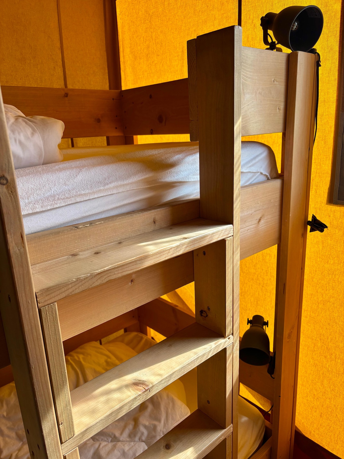 Herinner jij je die ronde tenten uit kinderboeken over avonturiers en ontdekkingsreizigers in de wildernis? Onze klassieke Bell Tent wekt deze jeugdverhalen tot leven, maar dan met meer stijl en comfort. Met een echt bed ben je verzekerd van een goede nachtrust. De tent is knus ingericht en voorzien van een opgemaakt 2-persoonsbed. Geniet buiten in een ligstoeltje van de natuur. Tip: Boek onze Bell-tent bij een Glamping logde als een extra "2-persoons slaapkamer".