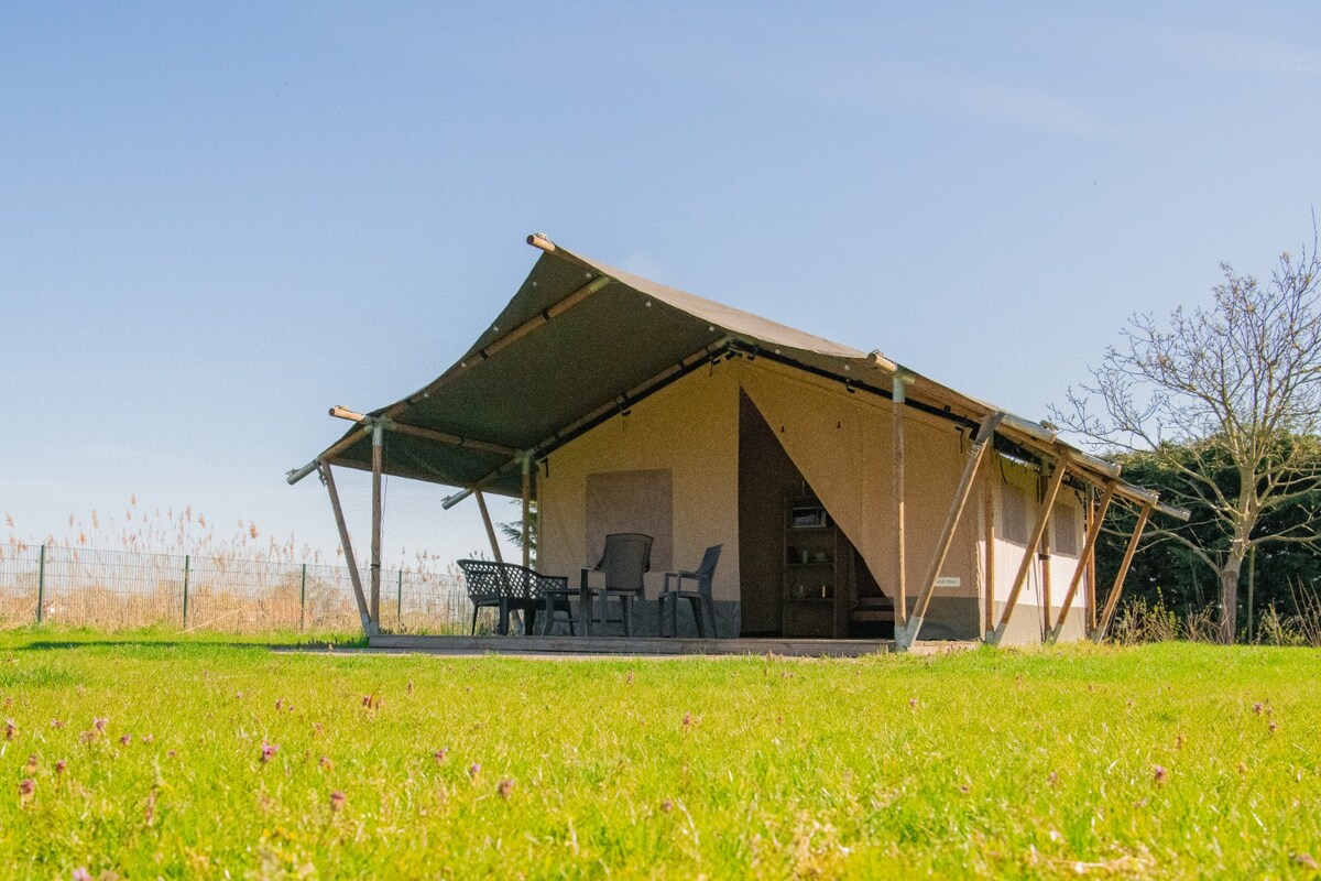 Ontsnap aan de dagelijkse sleur en boek nu onze luxueuze safaritent! De safaritent heeft 1 tweepersoonsbed, een stapelbed en een bedstee, een volledig uitgeruste keuken, een eethoek en een badkamer met regendouche. Een overdekt terras, met zicht op de polder. De tent is net geplaatst, er ligt nog geen mooi grasveld. Daarom bieden wij de tent aan voor een tarief van € 115 in plaats van € 125 per nacht. Mogelijkheid tot bijboeken van een HOTTUB!.