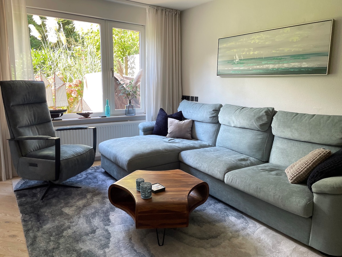 Modern, newly renovated 3-room apartment of 70m² just a few minutes' walk from the historic fortified town of Veere. Our apartment consists of a large living/dining room with a fireplace, a luxury kitchen, two bedrooms with box spring beds and the couch becomes a sofa bed. The terrace with a small garden invites you to sunbathe and play. Beaches and marinas can be reached very quickly by bike or car. You will immediately feel at home here :)