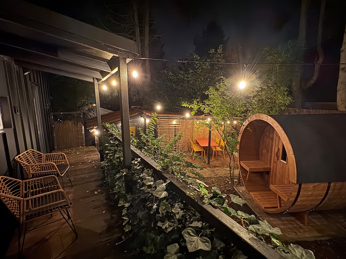 A unique log cabin with modern interior and glass double doors overlooking the yard and sitting area. Well designed interior with all the essentials and many of the non-essentials including a modern kitchen and bathroom. We are proud to provide our guests with the best fairtrade coffee they have ever had. The Siemens EQ6 will make all the Espresso, Cappuccino & Latte Macchiato you like. Centrally located in the Netherlands: 20 min bus to Utrecht. Less then 45 car minutes from Amsterdam.