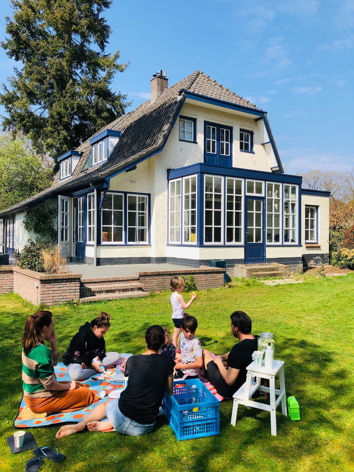 Group location 7-16 pers, 7 persons is minimum to stay. You pay per person. Renovated authentic large country house 1907 in Amsterdam Lake district, Loosdrecht. Surrounded by beautiful lakes, woods, countryside. Close to city life 30 min from Amsterdam center and airport. Trainstation 10 min, taxi, Uber, busstop in front of house, 2 shopping centers 5 min by car, market 10 min. Central Holland, historical, terraces on the lakes, restaurants, watersport, boat, sup and bike rent, swimming.