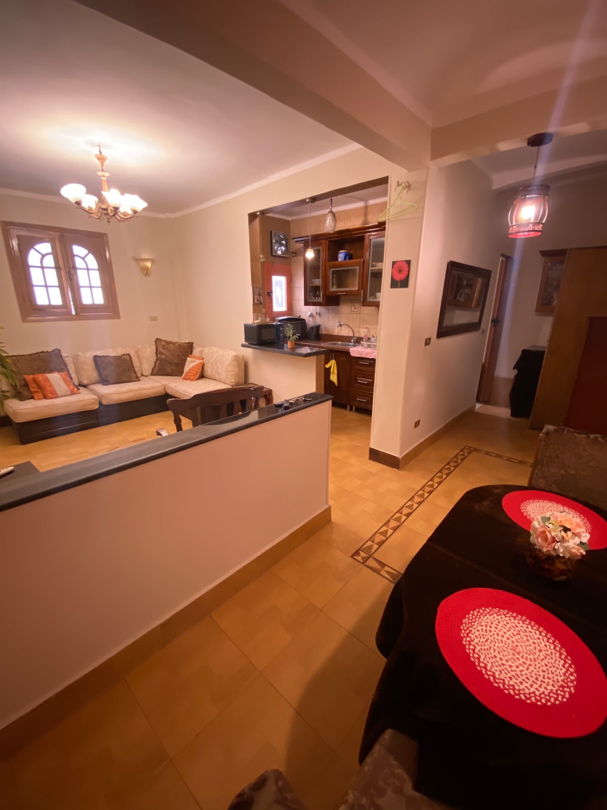 Stay in a beautifully renovated apartment located in the center of Heliopolis—one of Cairo's oldest and most charming neighborhoods, You’ll be just steps away from local restaurants, banks, and currency exchange . Major shopping malls are a quick 10-minute drive, and Carrefour is only 5 minutes away . The apartment is 15 minutes from Cairo Airport and about 20 minutes from the Old City. the apartment is renovated and furnished to a high standard, air condition is in all the rooms .