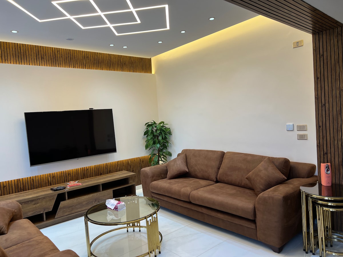 Spacious flat in the heart of Cairo, just across the road from KFC, McDonald's, Domino’s Pizza, Al Agha Restaurant Al Mandi palace, Starbucks, cafes, Dina farms pastries, Convenience stores nearby, Gym, Shopping malls, 24 hours Pharmacy. 20 min drive to the airport, short walk to Roxy Square, Maryland Park, 45 minutes Drive to the Pyramids of Giza, The flat Sleeps up to 7 people, perfect for families or groups. Enjoy a comfortable stay in this prime location, perfect for exploration of Cairo.
