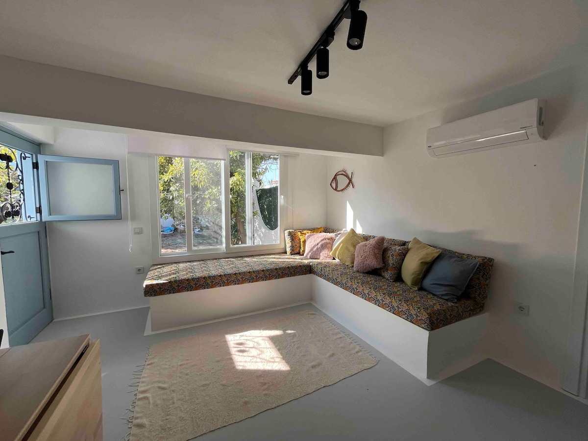 The studio is newly renowated and located at the heart of Bodrum old town. Within 10 min walking distance to the Crusaders castle, 2 min to the bar street. 1 min to the beach. Many restaurants, cafes and shops around.