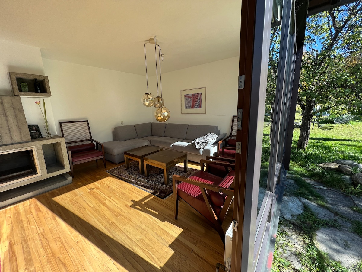 带壁炉和花园的舒适房子