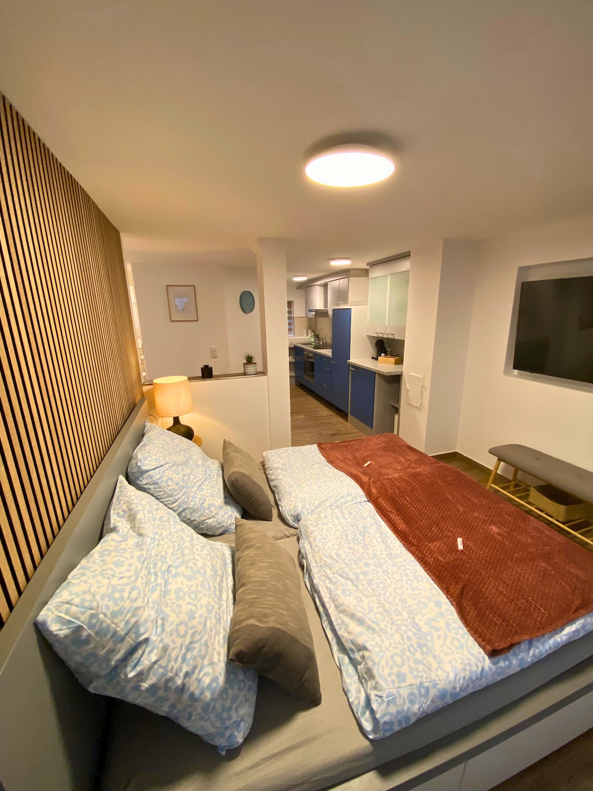 Allgaier's 1-Zimmer-Apartment Unweit zu der historischen Altstadt, nur ca. 5 Minuten Fußweg zur Fußgängerzone mit Fachwerkhäusern und vielen verschiedenen Einkaufsmöglichkeiten, können wir ein ca. 20m² großes, komplett neu renoviertes und möbiliertes Zimmer anbieten. Parkmöglichkeiten befinden sich am Haus und eine Bäckerei gibt es in unmittelbarer Nähe. Keine Haustiere erlaubt. Ein- und Aus-Checken nach Absprache. Bei Aufenthalten ab 10 Tagen fallen zusätzliche Reinigungskosten an.