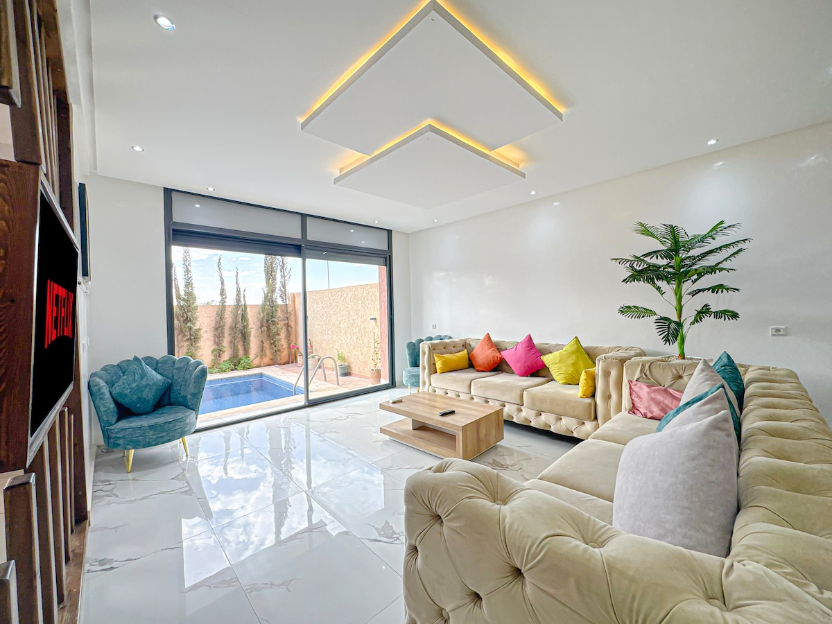🌿 Brand-New Modern Villa Marrakech | Private Pool, Chef & Atlas Views Launched on Airbnb 2 August 2025, this modern villa offers stunning Atlas Mountain views, a private swimming pool, a lush garden, and the option of a private chef to elevate your stay. Perfect for families, couples or friends, enjoy a peaceful retreat just 35 minutes from Marrakech city center, with easy access to local attractions and unforgettable experiences.