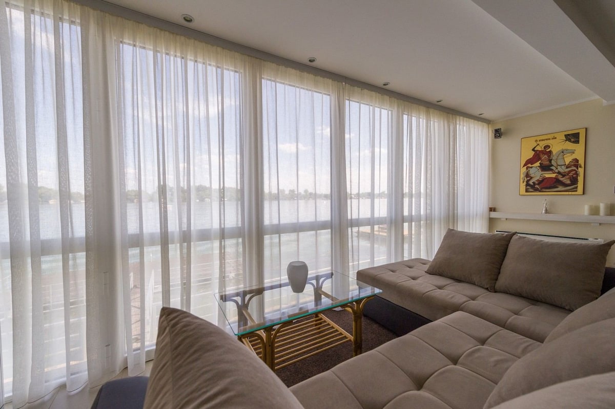 Reconnect with nature at this unforgettable escape. Luxury floating-house on water is comfortable and cozy, designed to provide wonderful and unique experience. It's charming and spacious big terrace on the water is ideal for sunbathing and relaxation by the river. We also have extra raft which you can use for fishing. It's located from city center 5 minutes by car and distance from airport is 20 minutes by car. Welcome to the perfect accommodation in Belgrade and we hope you have a great time!