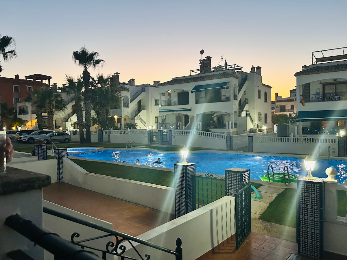 Welcome to Arbequina Apartment in Flamenca Village-just steps from Playa Flamenca, La Zenia Beach, and Flamenca Boulevard outdoor shopping center. This stylish, family-friendly apartment overlooks the courtyard and includes a dedicated secure underground parking spot. Enjoy multiple pools, hot tubs, a gym, a sauna, and a chill-out bar. With beach, shopping, and resort-style amenities all nearby, it's the perfect spot for all ages to relax, explore, and enjoy the Costa Blanca lifestyle.