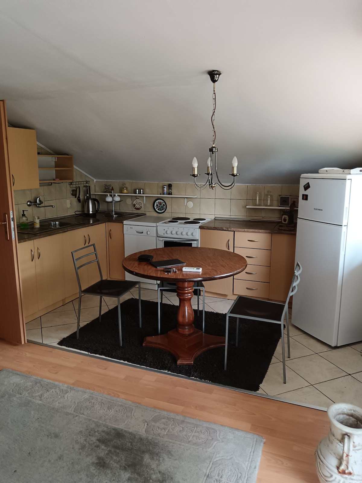 Cozy apartment in the heart of Tuzla, 100m from Korzo and near Panonska lakes. Suitable for 2 guests + baby. Features AC, Beha heating, 2 balconies, fenced yard, parking, and 2 BBQs. Free driver and car for local shopping, airport pickup for stays over 3 days. Uredan smještaj u centru idealan za miran odmor. Dvorište je ograđeno i sadržajno, sa parkingom, 2 roštilja i balkona. Klima i grijanje osiguravaju ugodan boravak tokom cijele godine. Lokacija je savršena za šetnje, kafiće i restorane.