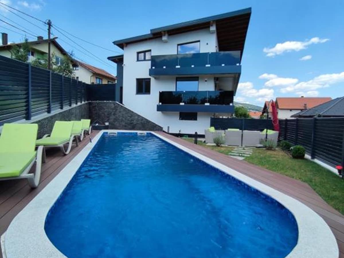Relax with the whole family at this peaceful place to stay. Why Villa Relax? Our villa is located only 10km from the center of Tuzla!It has 3 bedrooms.Living room, two kitchens, two toilets, relaxation room.Table tennis, darts, swings, lazy bags are just some of the pleasures that our villa offers Heated pool and jacuzzi. Outdoor and indoor fountain with grill.Free parking for 8 vehicles.Complete privacy.Possibility of food delivery to the address