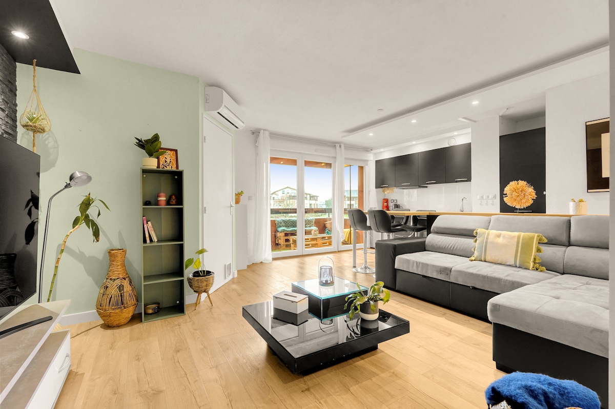 漂亮宽敞的 T2 房型,靠近 Zénith 体育场,带停车位