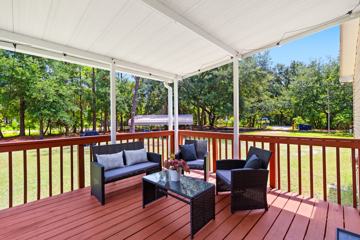 Come relax away from it all, in the middle of it all. Our super cute farm house is located on 10 peaceful acres in Wesley Chapel where you can sit on the covered porches and watch our abundant assortment of wildlife including deer, tortoises, and rabbits ALL while having your coffee or wine. You can see all of the stars in the night sky, yet you are 5 mins from shopping, dining and entertainment and a mere 15 mins from Tampa. 5 mins from I-75. Complete privacy, but centrally located.