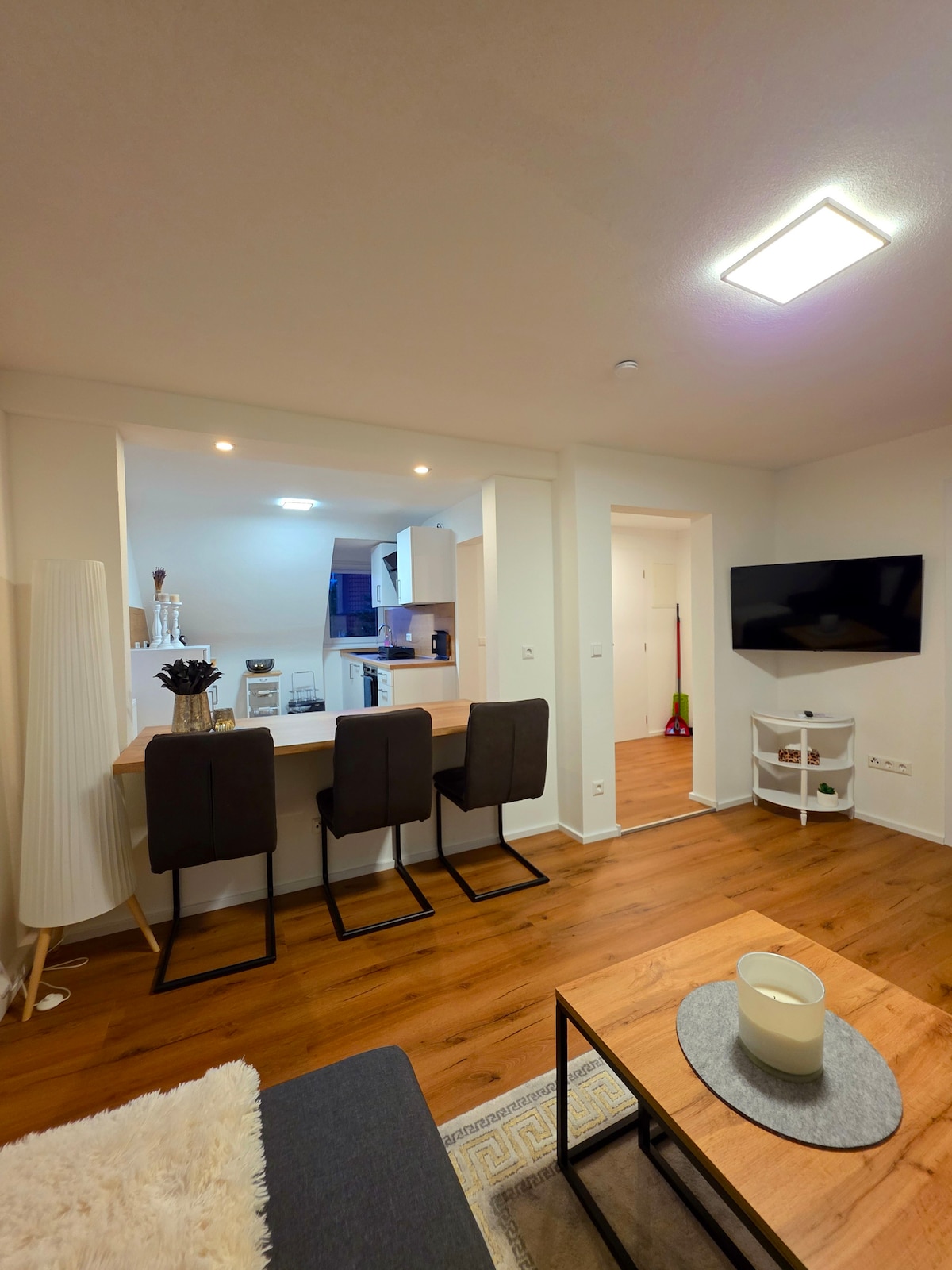 Panoramic Views with Spectacular Sunrises Enjoy breathtaking sunrises every morning. Our accommodation is modern and fully furnished with brand-new furniture. The trade fair grounds and city center are only a 5–10 minute drive away. Perfect for families with children, couples, solo adventurers, business travelers, and groups of up to 5 guests. Quiet suburban location with easy access to nature.