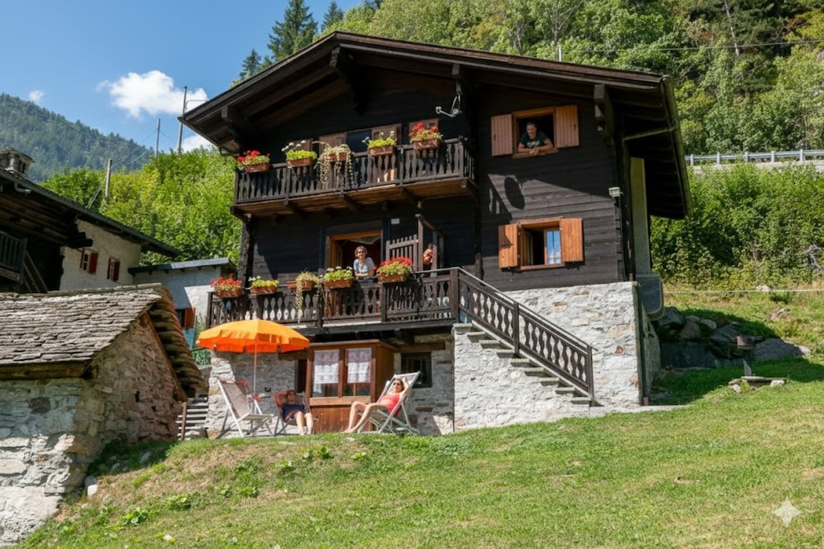 Enjoy the chance to spend few days in a typical mountain chalet in the heart of the Italian Alps. "Alpe Quaggiui" where our Chalet is located, is an ancient village at an altitude of 1000 meters, with no restaurants, shop and bars and that can be reached by driving along a private mountain road of 3 kilometers. A place where silence and peace reign supreme and where you will find at your disposal our typical Chalet, ready to welcome up to 6 people.