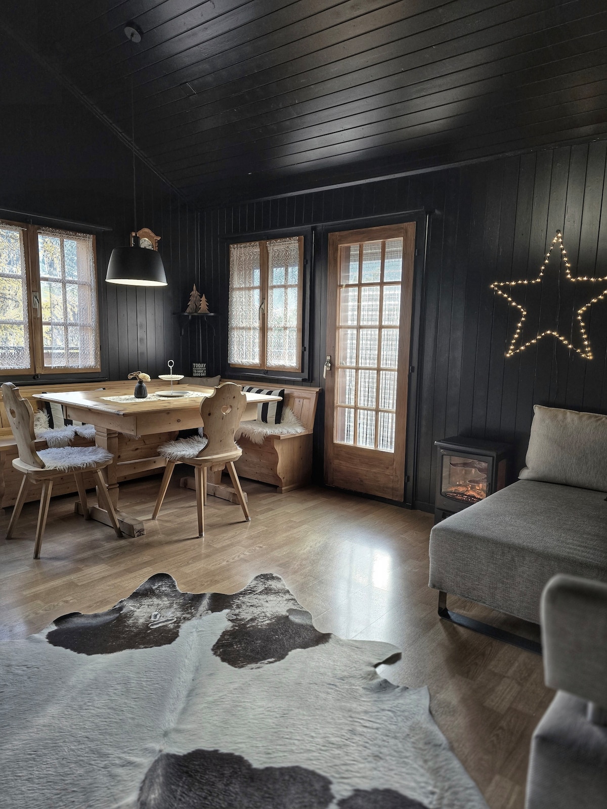 Chaleureux chalet cosy au cœur du magnifique quartier du Mounteillè. Ancienne grange-écurie, ce vieux bâtiment vous accueillera avec toute son âme. Désormais refait à neuf, décoré avec goût, passez un moment unique dans l'un des plus jolis chalets à 5min d’Evolène. Accès à pied à 3 min: boulangerie, restaurant, car postal et place de jeux pour enfants, court de tennis. Baby lift et piste de ski de fond à 5 min. Nombreuses randonnées en peau de phoque dans la région, à découvrir!!! Magicpass ok