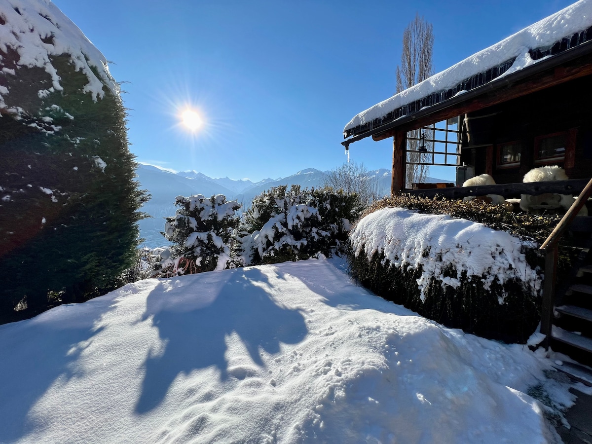 A very cosy little chalet (62m2) 2 pers at the top of the Lodge , very quiet location. In front line facing the mountains, sight entirely released with breathtaking views over the Swiss Alps and its sunsets. A little away from the turbulent and noisy ski resort but still reachable in one minute by car or 500m walk to the free ski bus. Free outdoor parking. We are all ski teachers and can provide ski lessons at attractive rates