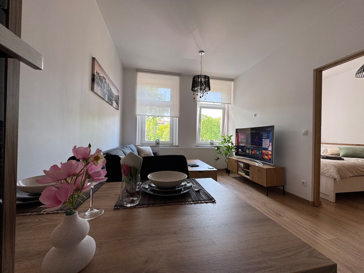 Obiekt Mieszkanie z widokiem na Görlitz oferuje balkon oraz widok na miasto.Obiekt zapewnia bezpłatne WiFi we wszystkich pomieszczeniach. W apartamencie zapewniono 1 sypialnię, kuchnię z lodówką i piekarnikiem, czajnikiem, telewizor z płaskim ekranem, część wypoczynkową oraz 1 łazienkę z wanną. W apartamencie zapewniono ręczniki i pościel. Odległość ważnych miejsc od obiektu: Dworzec główny w Görlitz – 17 km, Ogród zoologiczny w Goerlitz – 18 km. Najbliższe lotnisko, Lotnisko Drezno.