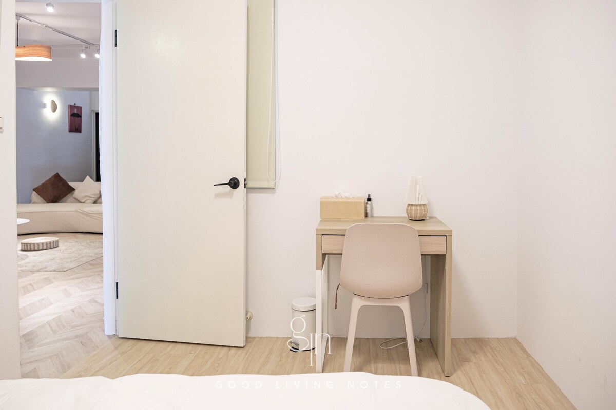 2 Private Bedrooms! 🚪 Modern & Quiet Retreat 🏠Global guests & flexible stays welcome! 🌏😃 Peaceful home 3 mins to Ziqiang Night Market 🍜. Perfect for international travelers! 【The Space ✨】 Privacy: 2 real bedrooms with double beds. No sharing! Work: Reliable Wi-Fi & dedicated workspace 💻. Kitchen: Large fridge, microwave & induction hob 🍳. 【Location 📍】 Near Hanshin Mall & Asia New Bay Area. Easy MRT access! 🛍️ 【Stays 🗓️】 Weekly & monthly stays welcome with special discounts! ☺️