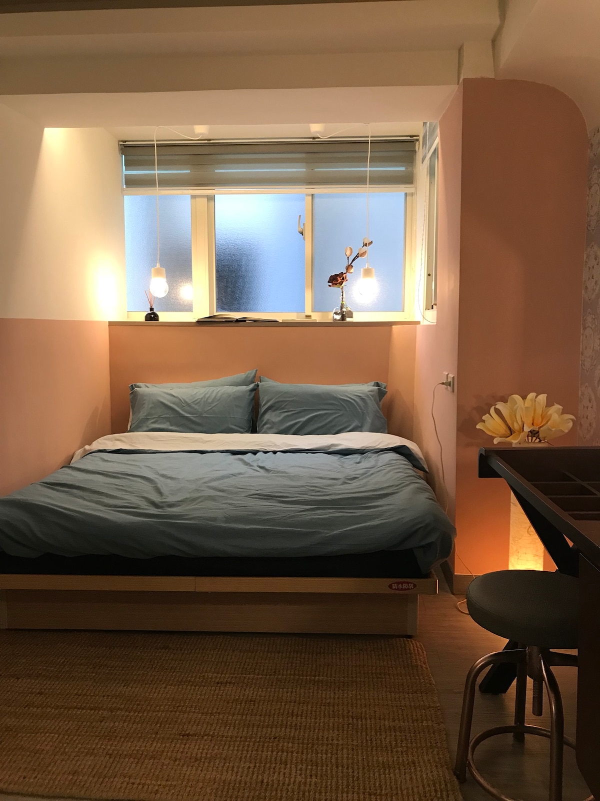 市區地利方便,全室冷暖空調,安靜,全新裝修, 樓下即可外食,採買方便,交通四通八達, 享受悠閒散步在中山北路上. Newly renovated with 2 individual bedrooms, downtown location, 24 hours security building, quiet and sunny, cool/heating air con. Minutes walk to MRT, 24 hour food stalls, restaurants and bars. Can provide the use of 2 travel cards upon request.