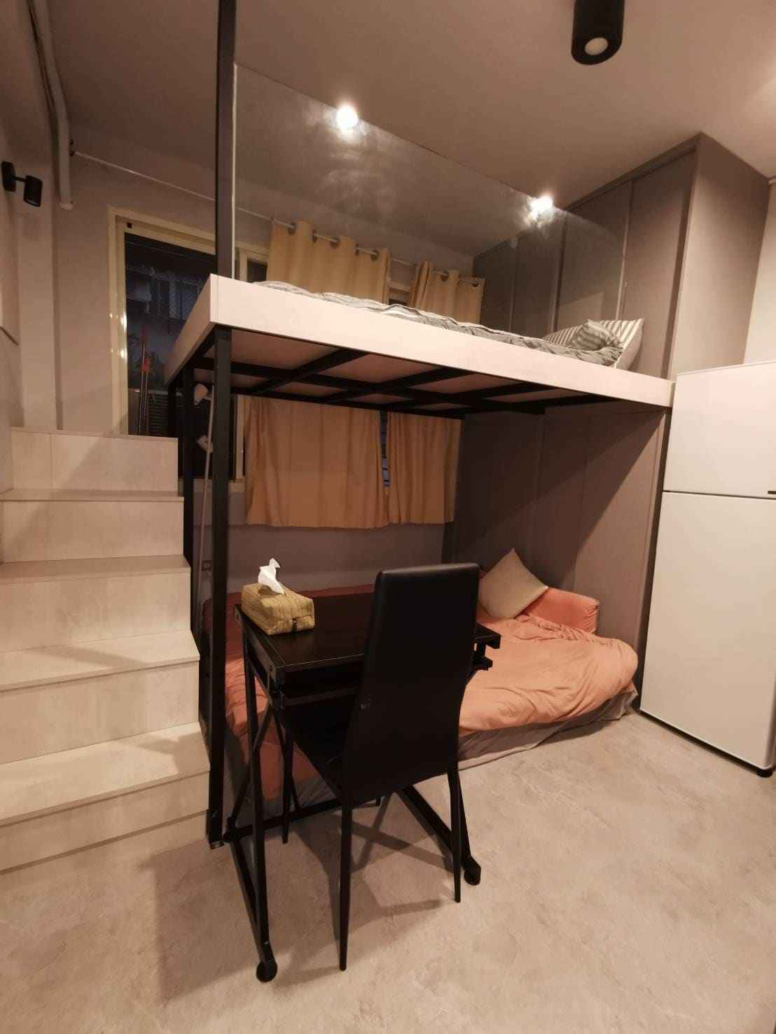 這間公寓風格非常一致:冷色調的灰與黑白配色、乾淨俐落的線條、極簡卻不失質感的裝飾,帶有一點歐式藝術氣息與電影場景感。象徵牆上的相框與城市風景,每一格都是生活的一幕。 一個房間:雙人床(2人) 另一個房間:單人加大(1人) 第四個人地墊床:不介意才訂房(1人) 沙發 吧台 椅子 設備:洗脫烘 2台除濕機 二層大冰箱 三台冷氣 一台電風扇 濾滴咖啡機 咖啡粉 濾紙 鍋碗瓢盆 湯勺鍋鏟,刀叉 筷子 菜刀 棧板 大湯碗 床笠 被套 枕頭加套 額外毛毯 200*230的大被子 韓國洗髮精 潤絲精 沐浴乳 肥皂 卸妝液 化妝棉 乳液 洗面乳 牙膏 毛巾 浴巾 洗衣精 請自備:牙刷 (沒有供應個人牙刷和刮鬍刀)