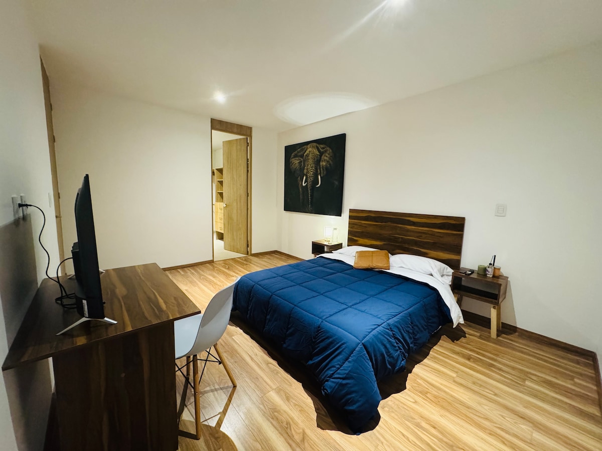 Moderno apartamento de espacios abiertos, cama Queen y sofá cama matrimonial. Con amplia cocina equipada y una espectacular terraza con asador. El apartamento se encuentra en una zona de alta seguridad. Campo de golf público, áreas para ejercitarse, hermosos jardines y plazas comerciales. Un espacio cómodo, tranquilo y armonioso donde se podrá disfrutar de agradables momentos en familia. A solo 5 minutos en auto de la universidad Anáhuac, ideal para estudiantes, ejecutivos o vacacionistas.