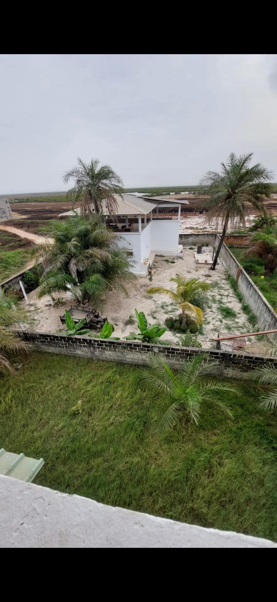 Grande maison en bordure de la mangrove et des rizières. Au Rdc : 1 chambre avec Sdb et 2 autres avec Sdb commune. 1 wc. 1 garage. A l'étage : Une très grande pièce de vie ouverte avec un toit en paille. 1 cuisine. 1 chambre avec Climatisation, Sdb et Wc.
