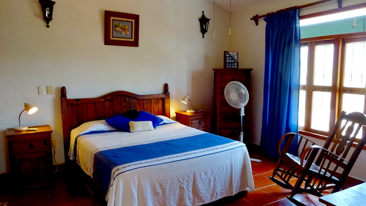 Linda habitación privada de todo el complejo. En la exclusiva área de la alberca. Entrada Independiente. Cuenta con su propio baño y estacionamiento. Además, cuenta con cocina en el área de la alberca, estufa grande de gas con seis hornillas, cafetera, trastes, agua potable de garrafón y refrigerador. También seguimos el protocolo de limpieza de Airbnb. En caso de que haya un imprevisto con el funcionamiento de algo, hay personal para que te lo resuelva a la brevedad.