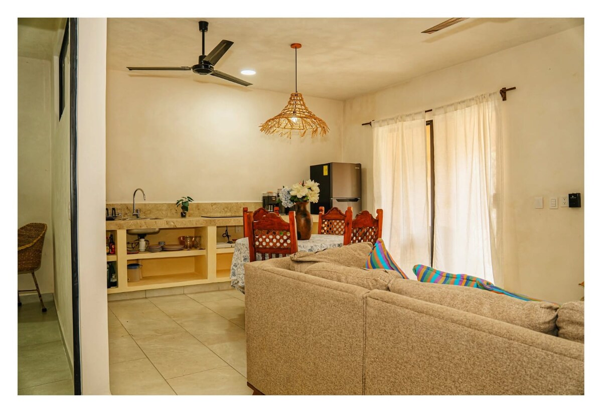Departamento de una recamara en Casa Xalli , de nueva construcción , con vista parcial a la laguna y playa , a 100 metros de la playa , Restaurantes, tiendas y el JACUZZI COMPARTIDO Incluye dormitorio (una cama king size) , un baño, sofa cama matrimonial, cocina , jacuzzi compartido (rooftop)