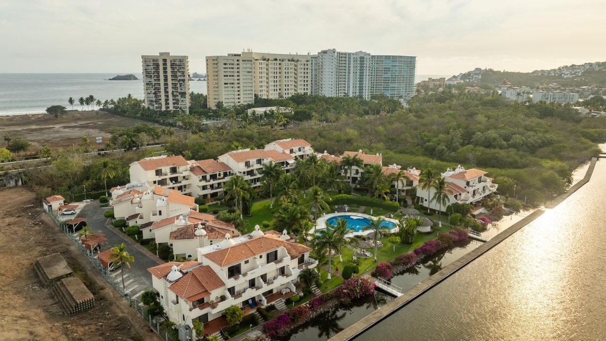 Villa Coco. Acogedor departamento con vista espectacular a Marina Ixtapa. Cuenta con terraza privada con la mejor vista a la marina, alberquita para disfrutar en total privacidad, 2 habitaciones con baño privado, cocina equipada. Ubicado en exclusivo condominio con alberca, estacionamiento y seguridad 24 h. Ideal para familias, parejas o amigos que buscan estilo, confort y una ubicación privilegiada cerca del corazón de Ixtapa. Perfecto para descansar, relajarte y disfrutar del paraíso.