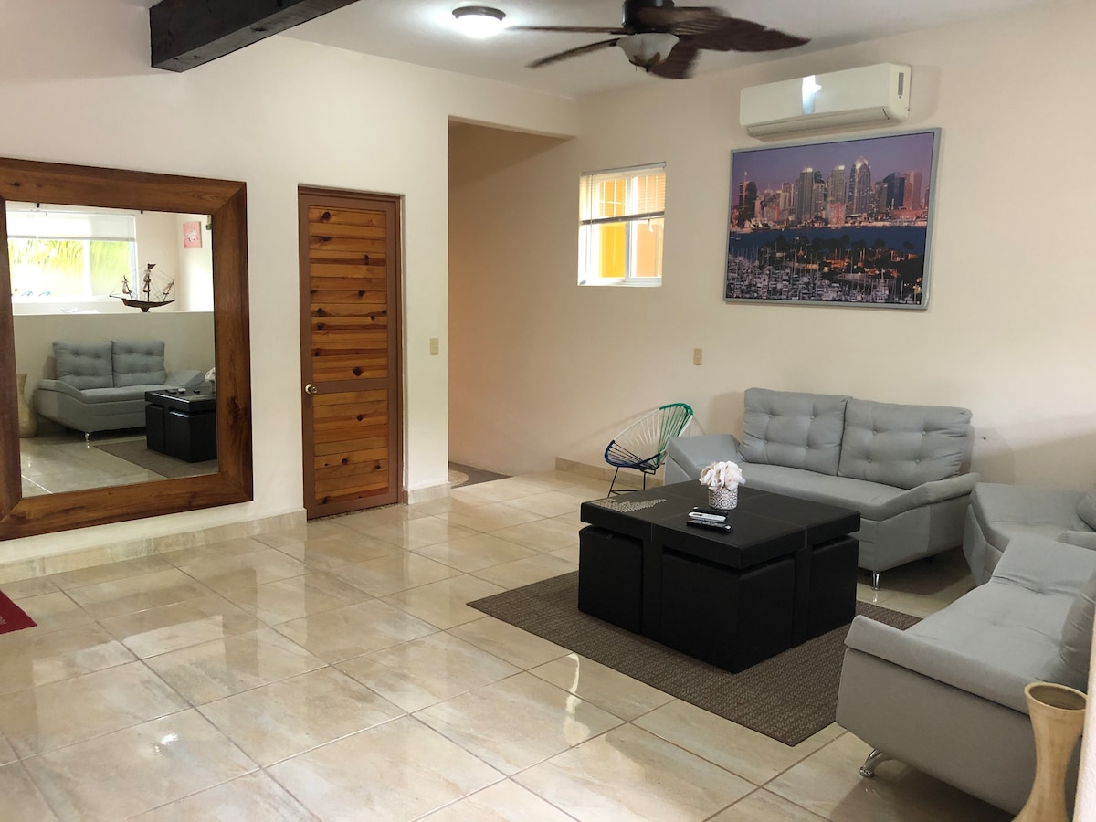 Located in Zihuatanejo, Mexico, the paradise mentioned in the movie "Shawshank Redemption." Next to a colorful fishing village & 5 min walk away to La Madera beach. The suite is ground floor with easy access to the dip pool. This is for guests who enjoy non-touristy holidays, with charming local mercados, delicious street tacos and beachfront bars. The unit is one of twelve in a small gated apartment complex. A/C, in-suite laundry, gas cooking and custom parota wood carpentry.