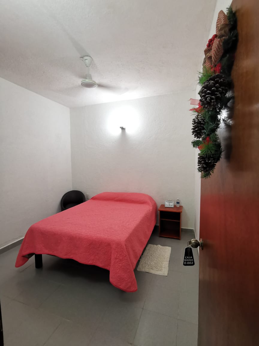 2 bedroom with 2 double beds and 1. both - ac, ceilig fan, living w tv cable, wifi, kitchen with cooktop, full fridge, basic appliances. Basic safe clean apartment, 1 block away from the City Hall & main Av. bus stop to north and south directions, 3 blocks away is central bus station to all cities connected by road. 10 minutes walk to beach, pier, Aurrera Walmart for supplies and atm across the st and a 24 hrs covenience Oxxo at the corner tacos & pizzas