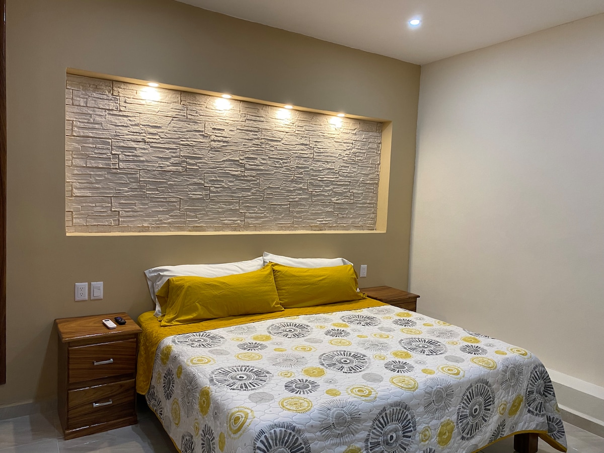 Disfruta de de la comodidad de este departamento, con excelente ubicación, a 5 min de la playa, y del área comercial, cuenta con Internet, cable área de lavado, boiler 2 recamaras con aire acondicionado, ventiladores, cocina equipada y lo que necesites para hacer de tu estadía mas placentera.