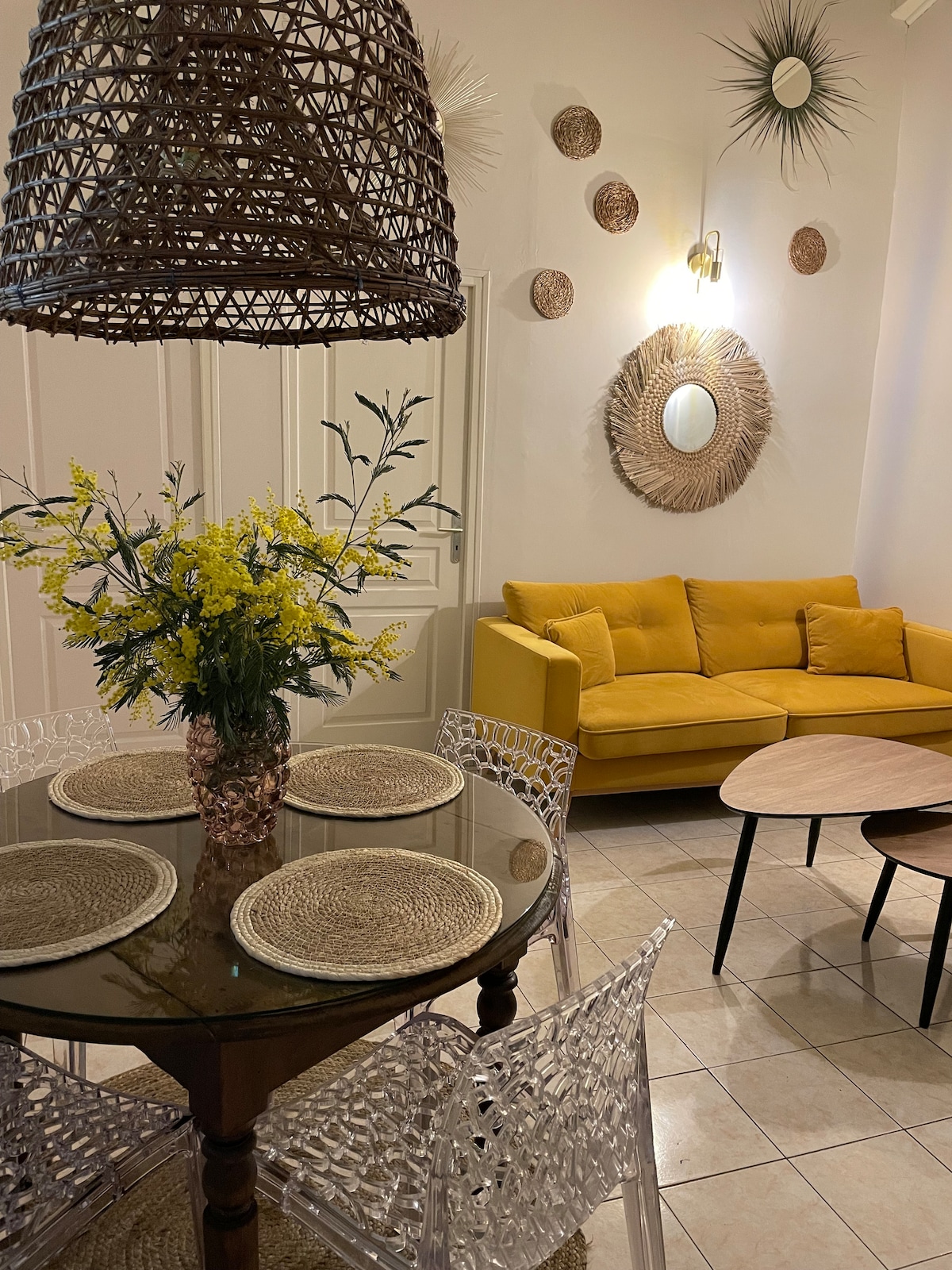 Notre logement offre une magnifique vue sur la montagne. Vous partagerez avec nous une piscine de 6X3M. La plage est accessible à pieds. Totalement rénové par nos soins, avec une décoration unique et raffinée. Vous disposez de 2 lits individuels dans la chambre et d’un divan lit 140X190 dans le séjour. La terrasse est équipée de fauteuils, table, chaises, barbecue. Isolés dans un immense jardin vous y serez au calme absolu. Vos enfants et animaux pourront y circuler en toute sécurité