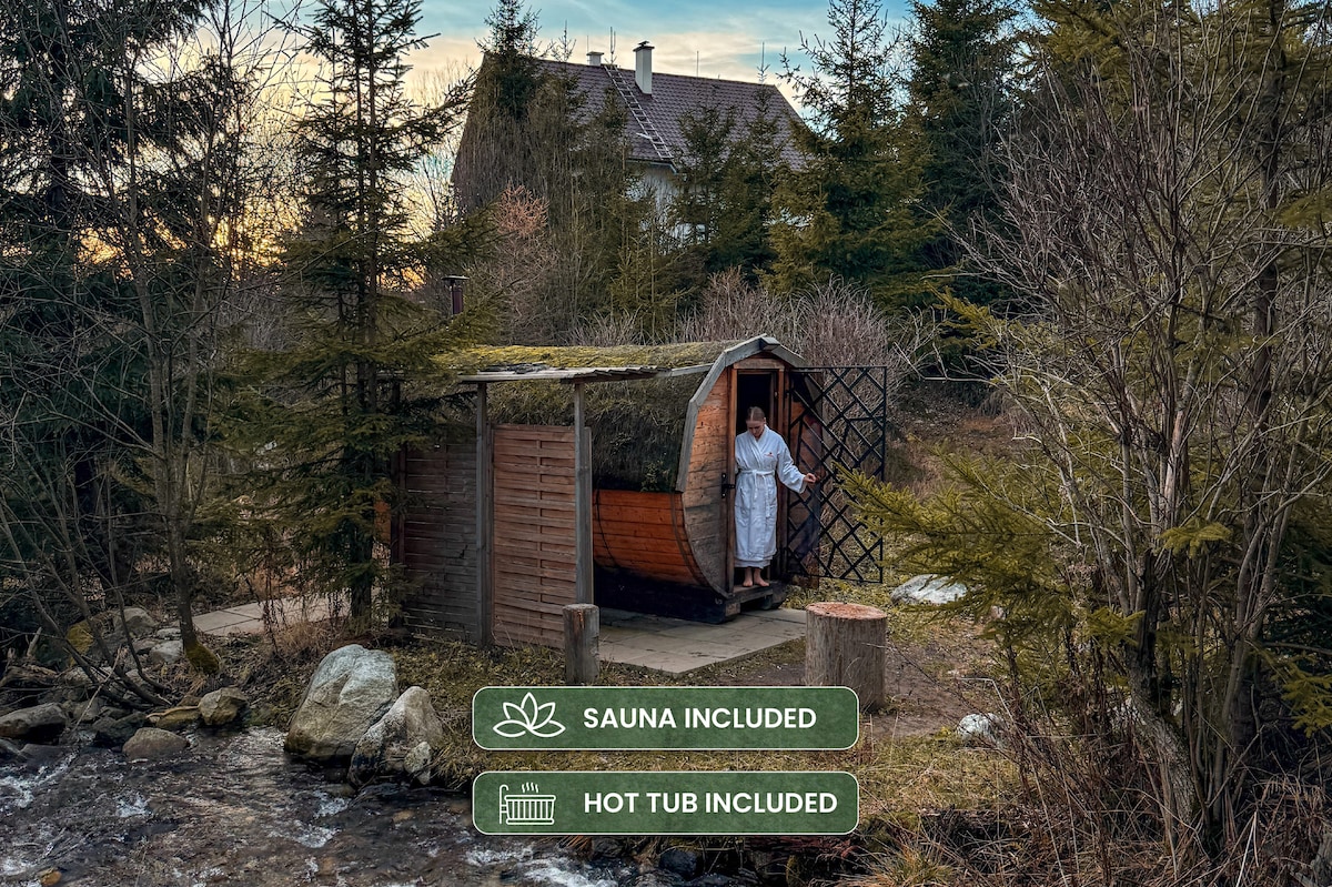 A cottage right by the Orava dam with a unique sauna is part of Slovak cultural heritage and thus protected. Fishing, swimming, boating, horse riding, hiking or just relaxing under the trees with the view of "Birds island" with more than 2000 birds or "Slanica island" with a gallery on it. Two apartments, a modern bathroom, and a big living room with a fully equipped kitchen. The house is 150+years old - it is cozy, freshly reconstructed, and well-maintained & equipped. No TV, fast internet.