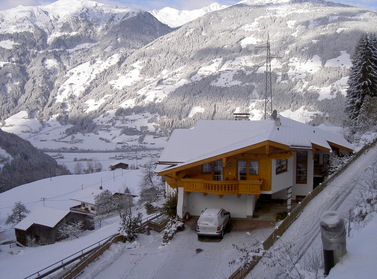 Unser modernes Alpen Chalet liegt an der Zillertaler Höhenstraße am Fuße des Zellberg und bietet gesamt 2 Wohnungen "Martha" & "Rosa". Bei Dachwohnung "Rosa" erwarten euch 4 traumhafte Schlafzimmer, 2 Badezimmer, 1 extra WC, voll ausgestattete, offene Küche mit Sitzecke und Wohnraum mit TV, 2 tolle Balkone! Skiraum mit Skischuhtrockner, Parkplätze und gratis W-Lan vorhanden! Perfekter Urlaub im alpinen Landhausstil :)