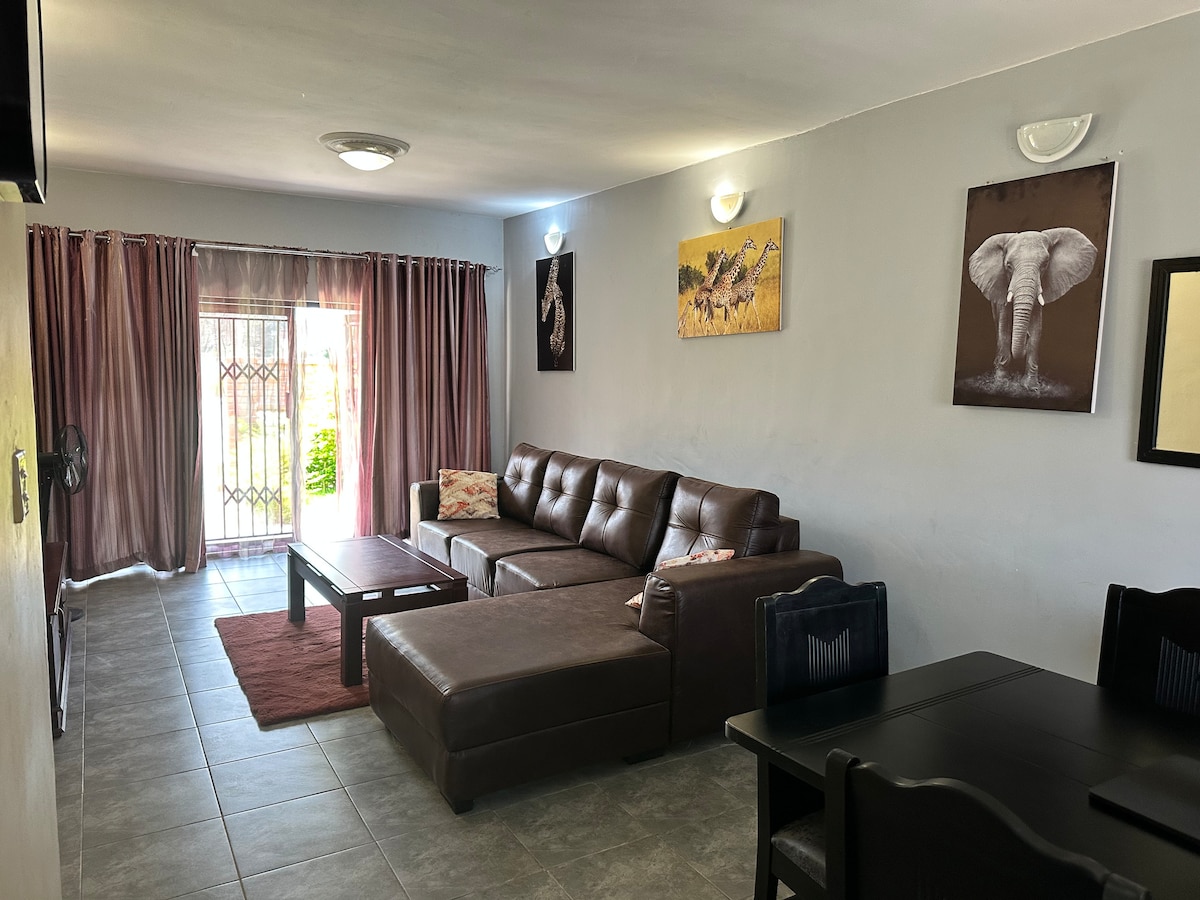 This is the perfect holiday home for traveling families and overland travelers. Each home has a fully fitted kitchen, Lounge, private garden and 2 en-suite bedrooms. Communal Pool area with BBQ facilities. Secure 24hr CCTV parking area with a guard on duty 24/7 Each Home is serviced daily by a housekeeper. Come and relax and unwind in the comfort of a home away from home, each home has a washing machine, Small garden, Smart TV and many more.
