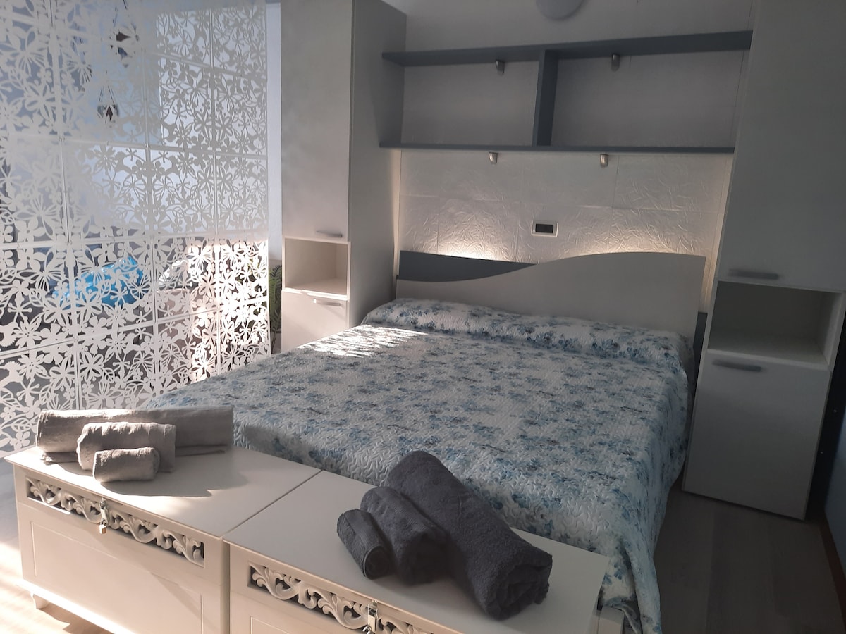 Delizioso Appartamento al piano terra con entrata indipendente elegante soggiorno abitabile e parcheggio privato interno. Dispone di una camera da letto matrimoniale con bagno privato e ampia cucina. Situato in posizione centrale e zona silenziosa vicinanze scuole medie centri sportivi stadio e (pista da Speedway) completo di ogni confort e giardino a disposizione. Cassetta Sicurezza esterna. Tv in ogni ambiente, WiFi e rete LAN (Connessione Ethernet) al bisogno lavatrice e asciugatrice