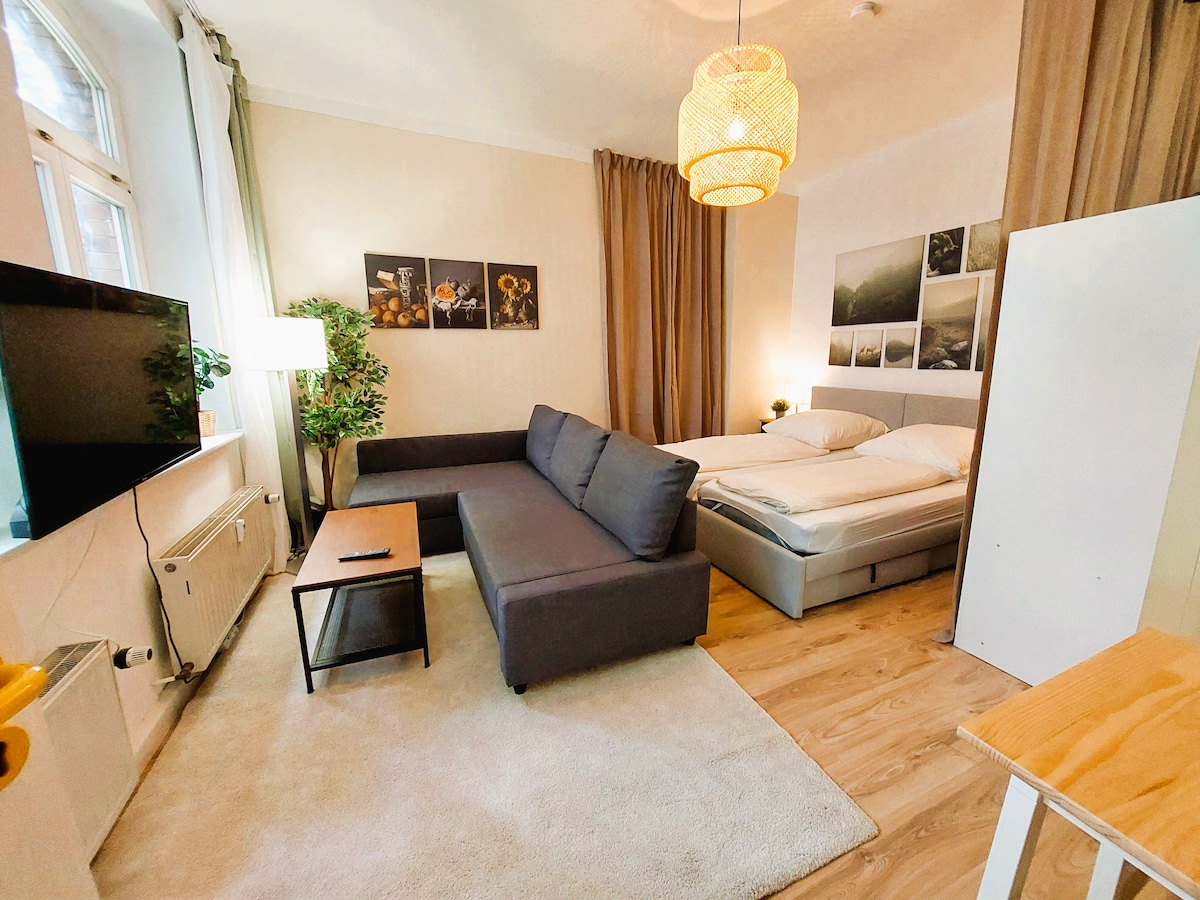 Lehne dich zurück und entspanne! Diese ruhige & stilvoll eingerichtete Wohnung bietet ein gemütliches Schlafzimmer, ein Wohnzimmer(Schlafsofa für 3. Person) mit voll ausgestatteter Küche und ein geräumiges Bad mit Dusche • kostenlose Parkplatzwiese ca 50m entfernt (Innenhof Privat) • Fußläufige Einkaufsmöglichkeiten des Alltags • nahegelegene Straßenbahn, Bushaltestelle Wir freuen uns darauf, Ihnen einen angenehmen Aufenthalt zu bieten und stehen für etwaige Anliegen gerne zur Verfügung.
