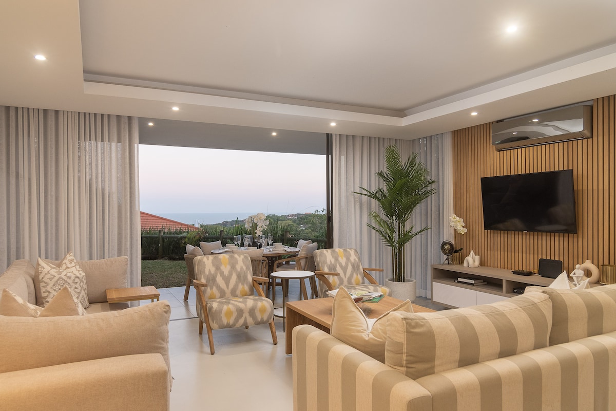 Modern Salt Rock Beach House • Ocean Views & Pool Wake up to sweeping ocean views and the sound of waves in this beautifully designed coastal home. Relax by the private pool, enjoy breezy open-plan living, and take in sunrises over the sea from the expansive glass great room. With curated décor, reliable solar power, and fast Wi-Fi, this home offers an effortless, tranquil escape just a short stroll from the beach. Ideal for families, couples or anyone craving a serene Dolphin Coast experience.