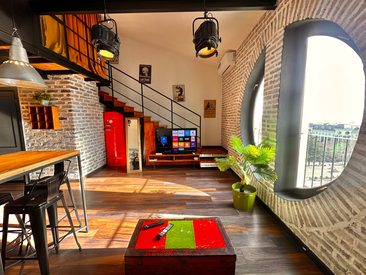 Amazingly located stylish top floor loft apartment in the very center of a historical part of Tbilisi. The apartment can offer you a beautiful terrace with a fantastic view, a cozy fireplace, a big bedroom, AC, bathroom with a bathtub and another bathroom with a shower and a washing machine. The apartment is suitable for four people. Within a walking distance you will find many cafes, bars, restaurants, historical sightseeings, famous sulfur baths and a beautiful Botanical garden.