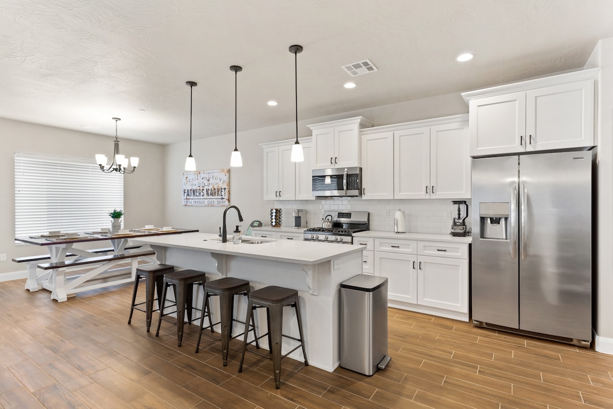 Brand new townhome that is sure to become your new favorite place to stay while exploring everything Southern Utah has to offer. This property is located only a short drive away from attractions such as Zion National Park and Sand Hollow & Quail Creek Reservoir. More information - Smart TVs in every room (e.g. Netflix, Hulu, etc.) - 2 Full Bunks, 4 Twin Bunks - 2 King Beds (Master w/ENSUITE Bathroom) - Garage parking for vehicles. - Private Upper Deck & Patio