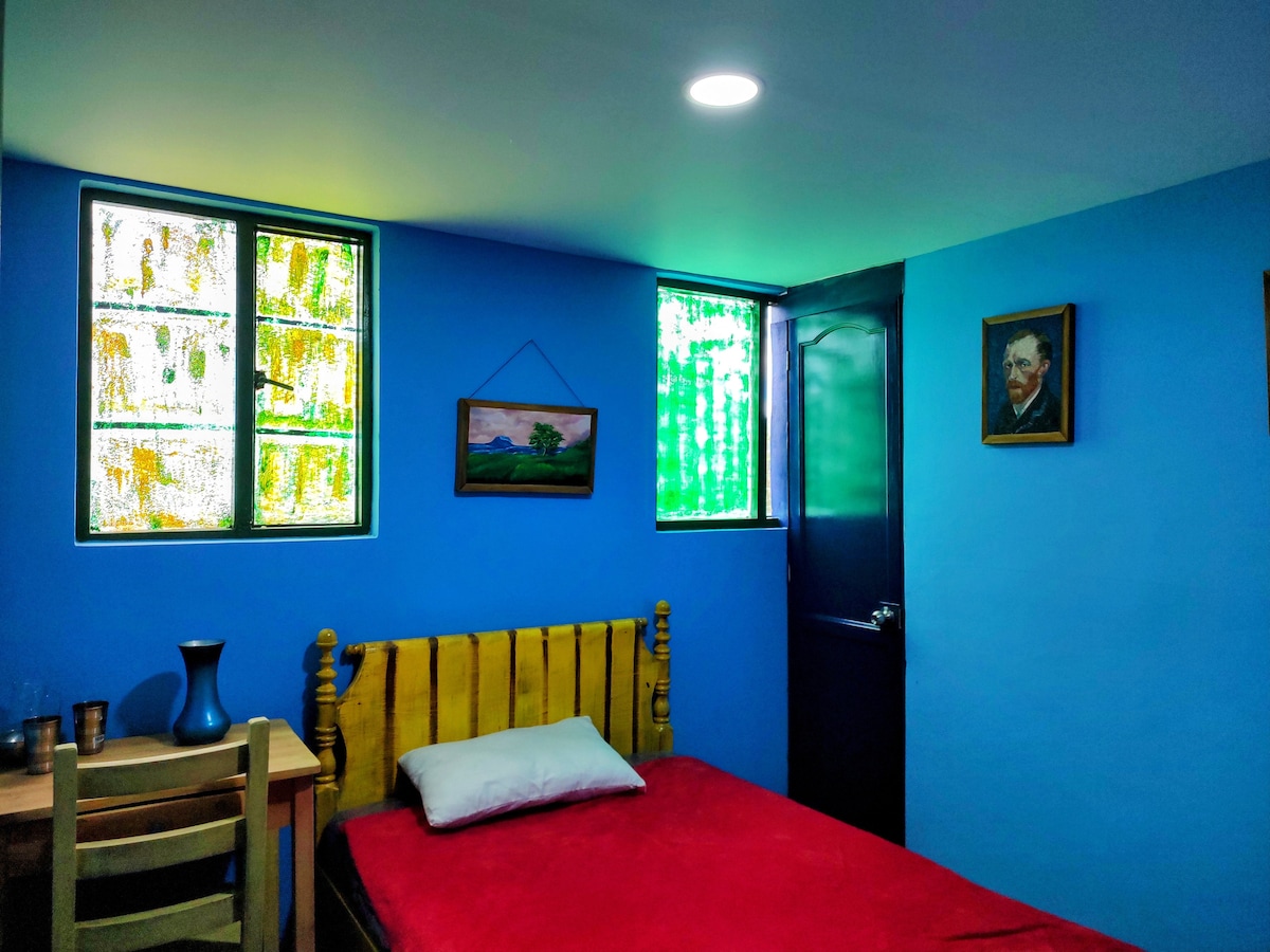 El apartamento se encuentra ubicado en frente de la Alcaldía Municipal a tan solo media cuadra del Parque Principal, a dos cuadras de la zona más representativa de restaurantes y bares de Zipaquirá. Está ubicado en el segundo piso con una vista privilegiada hacia la zona colonial y la catedral principal. Consta de una confortable habitación de una cama doble con baño privado, una amplia cocina, TV pantalla plana, televisión local por cable y Wi-Fi de alta velocidad.