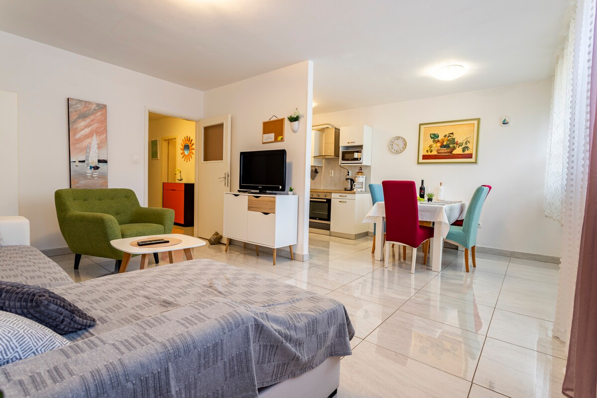 Nestled in the heart of Omiš, the Lovely Studio Apartment offers a vibrant retreat where modern meets coastal charm. This studio is 10 minute walk away from central parking lot (ticket is included in the price). Wi-fi, airconditioning and tourist tax - included in the price. The nearest beach is 2 minute walk. Step outside onto your private terace, where the rythmic sounds of Omiš center create a symphony, making it perfect spot to unwind after a day of exploration.