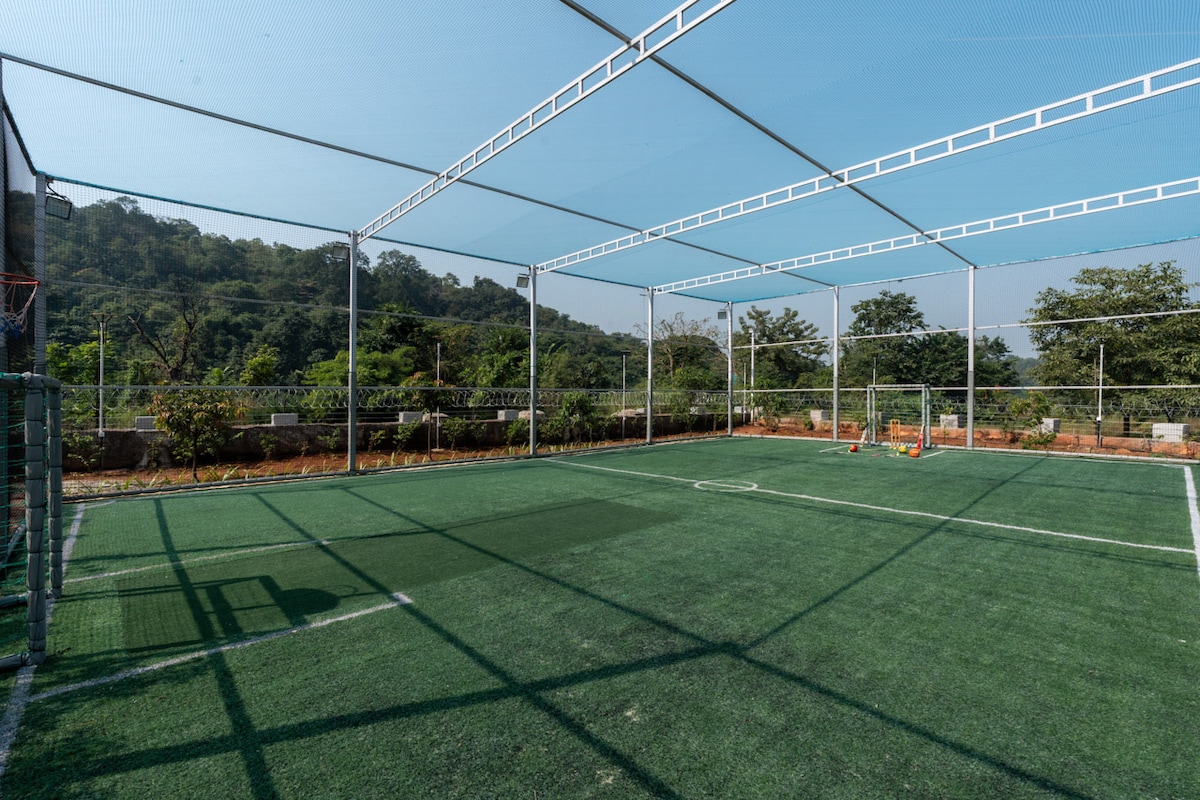 - private swimming pool (22FTx12FT) - bath tubs (2) - 800 meters from Kihim Beach - bonfire - barbecue - AC in living room and all bedrooms - badminton - carrom - spacious 4 bedrooms - lavish 4 bathrooms - king size beds with memory foam mattresses - 24X7 caretakers - ample parking - 29,000 sq ft premises - 1530 sq ft built up area - open terrace for star gazing - 11 km from Mandwa Jetty - peaceful location with bird chirping - clean, neat and well maintained - delicious food