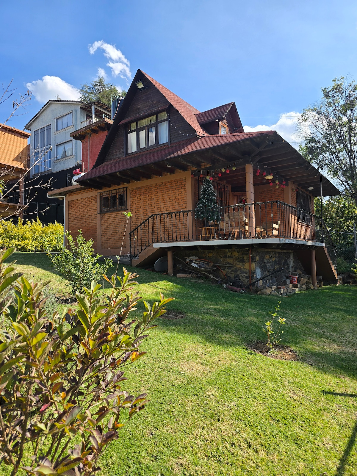 Acogedora y cómoda cabaña totalmente de madera, tipo alpina, rodeada de naturaleza. En pareja o con toda la familia, podrás disfrutar de 3300 m2 de jardines, juegos infantiles, hamacas, asador, fogatero, salón de eventos con baños independientes. Y una cabaña equipada con recámara King size, chimenea, cocina completa, baño completo, TV de 48” y WIFI. Todo esto a 10 min del centro de Pátzcuaro.
