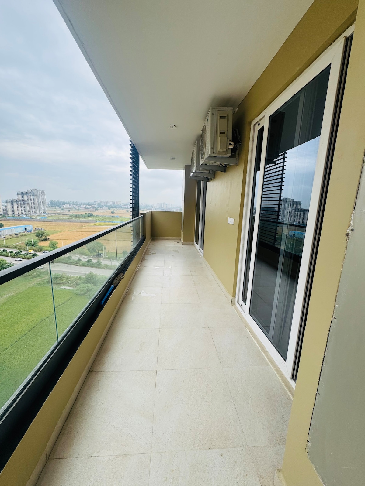 3 People sleep comfortably. 2 people sleep in Main room and 1 person sleep on a comfortable Sofa cum bed in 1st entry room. Both rooms have a door. 2 Kids could easily sleep on Sofa Cum Bed. Location- Chandigarh Citi Center (CCC), VIP Road, Zirakpur Just 200 meters from Sunday Hotel, Park Plaza, Holiday Inn and Cosmo Mall We have few such 3 Peoples sleeping apartments so, can allocate based on the availability, few apartments have private balcony. This listing for a 3-4 people group only.