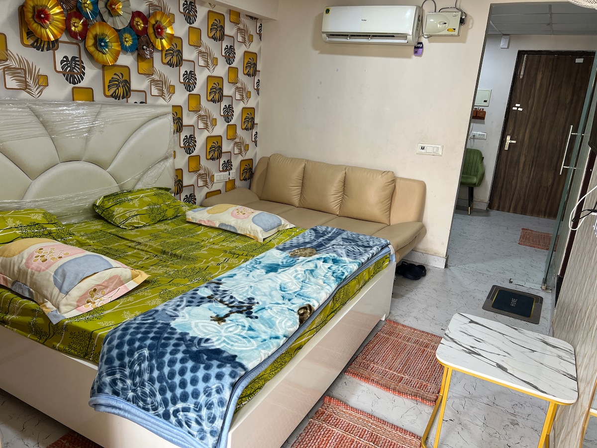 Enjoy a serene stay in a contemporary 1 BHK apartment at CCC, Zirakpur, just opposite Ambala Highway. Explore nearby dining options like KFC,Starbucks and McDonald's, with convenient parking available. We welcome unmarried couples and can arrange birthday celebrations. Solo female travelers will find our property safe and secure. Experience seamless check-in and round-the-clock support for all your needs. Relax in a spacious, well-appointed living space with a fully equipped kitchenette.